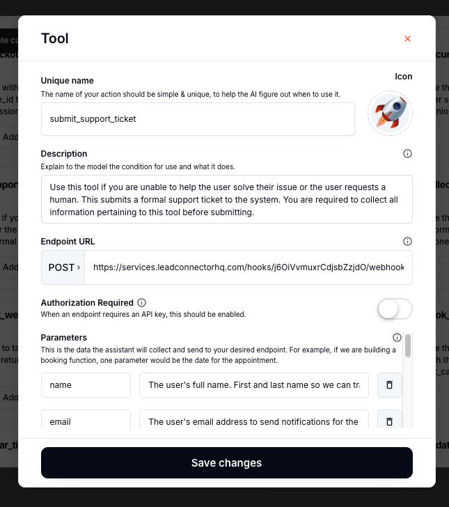 Custom Tool: Submit a Support Ticket on Behalf of User